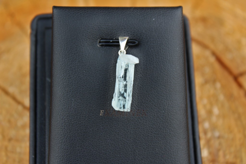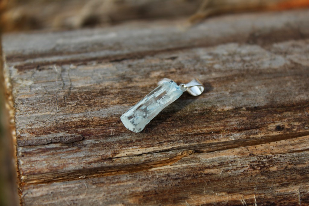 Přívěšek s akvamarínem se stříbrným úchytem.