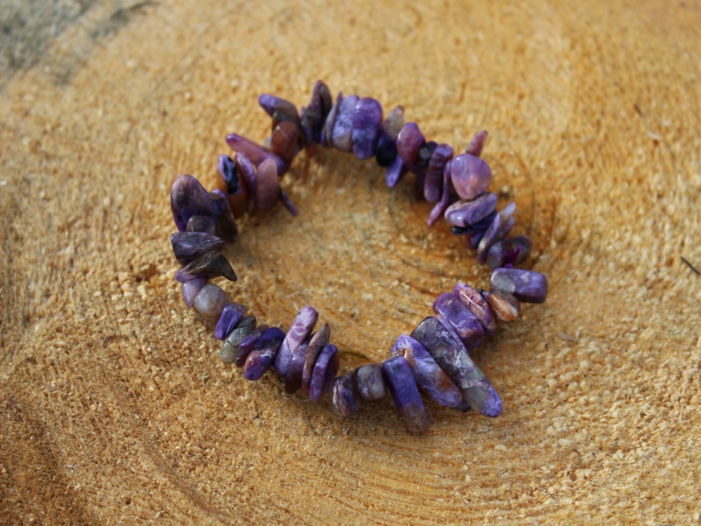 Náramek z čaroitu navlékaný na gumičce (bez zapínání) o délce +- 18 cm. Čaroit nalezneme na jediném místě na světe, a to na Sibiři. Nedaleko místa naleziště protéká řeka Čara, odtud získal tento kámen svůj název.