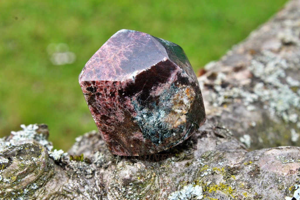 Ručně broušený granát - almandin krystalového tvaru.