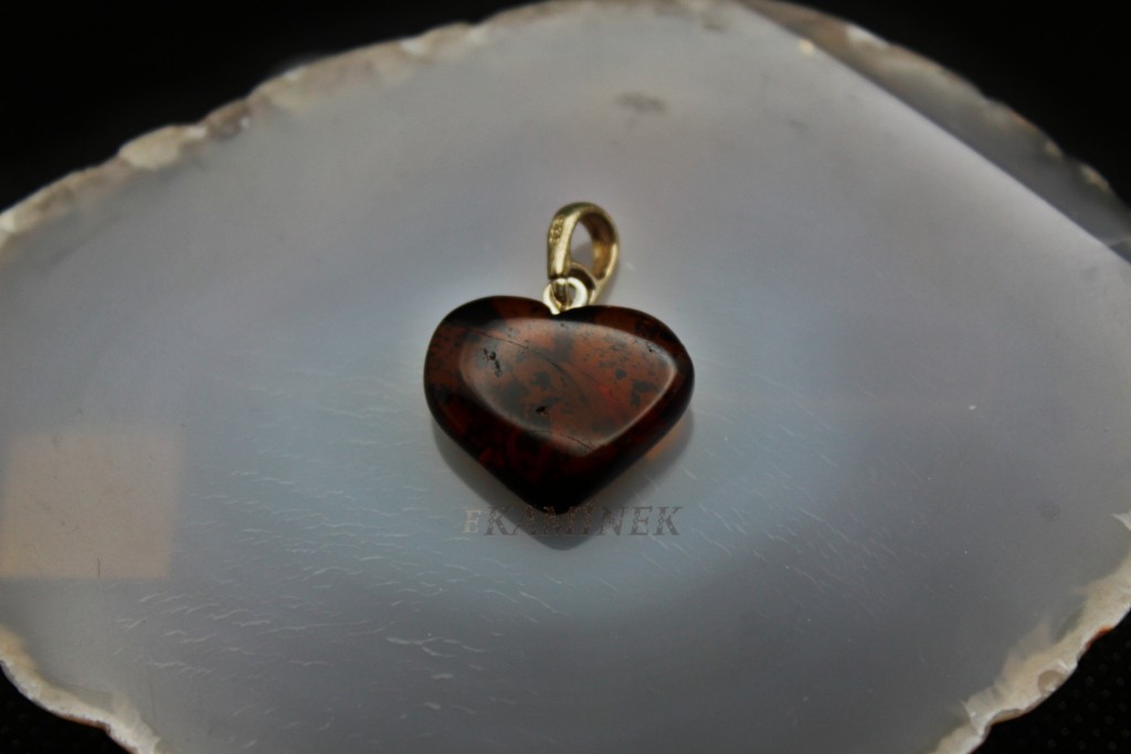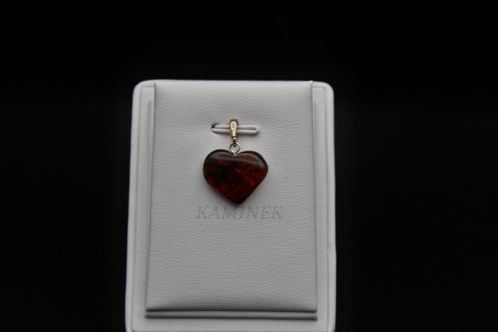 Přívěšek ve tvaru srdce z jantaru. Jantar není typický tvrdý kámen ale jedná se o zkamenělou pryskyřici z pravěkých borovic, která může být v některých případech až 100 milionů let stará.