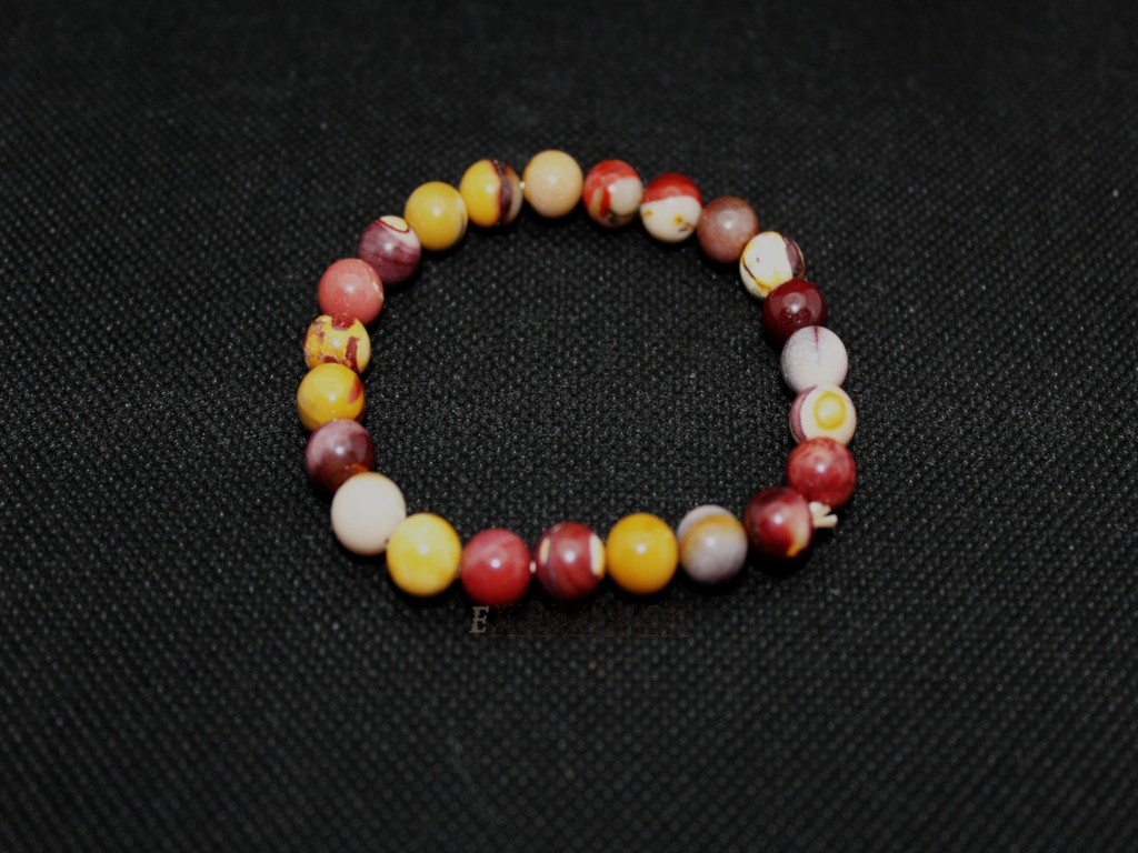 Navlékaný náramek z kuliček moonkaitu o délce +- 18 cm. Náramek je navlékán na gumičce - bez zapínání.