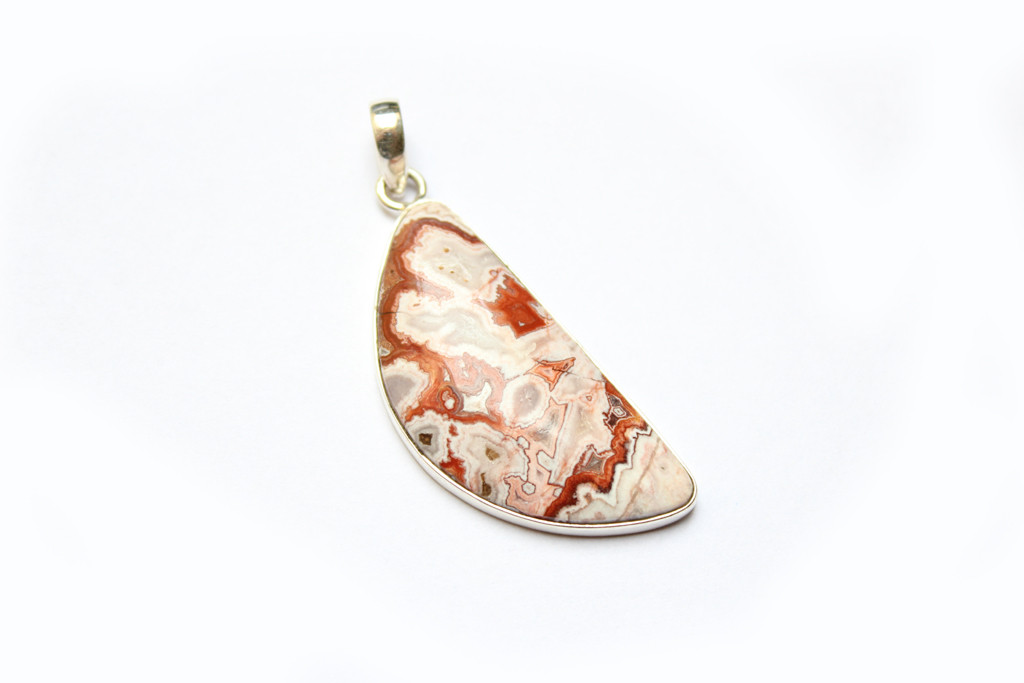 Pestrý jaspis dovezený z Madagaskaru zasazený ve stříbrném rámečku. Přívěsek má rozměry 58x20x5mm včetně úchytu. Váha přívěsku je 10,86g.