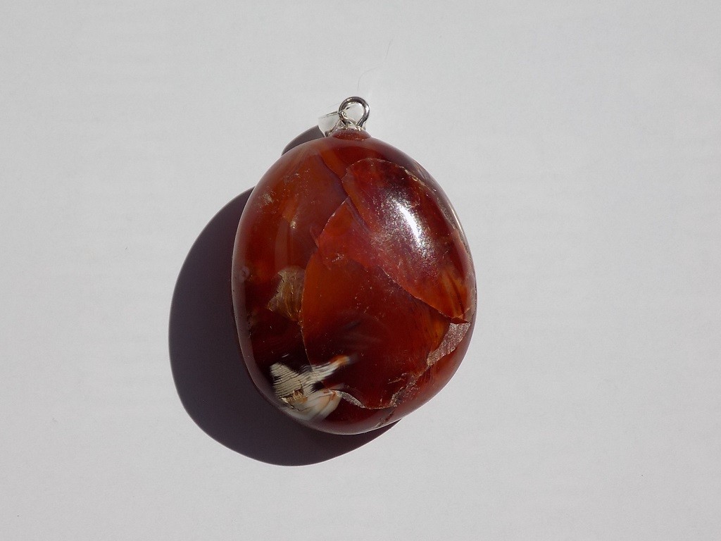 Přívěsek z karneolu se stříbrným úchytem.