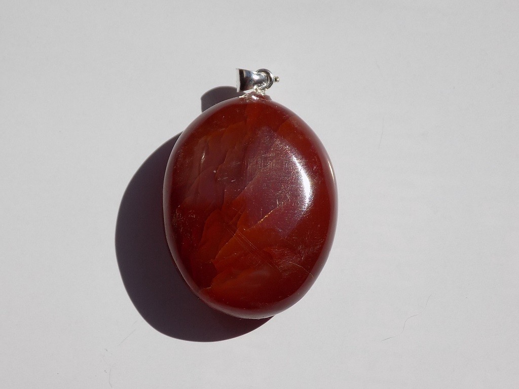 Přívěsek z karneolu se stříbrným úchytem.
