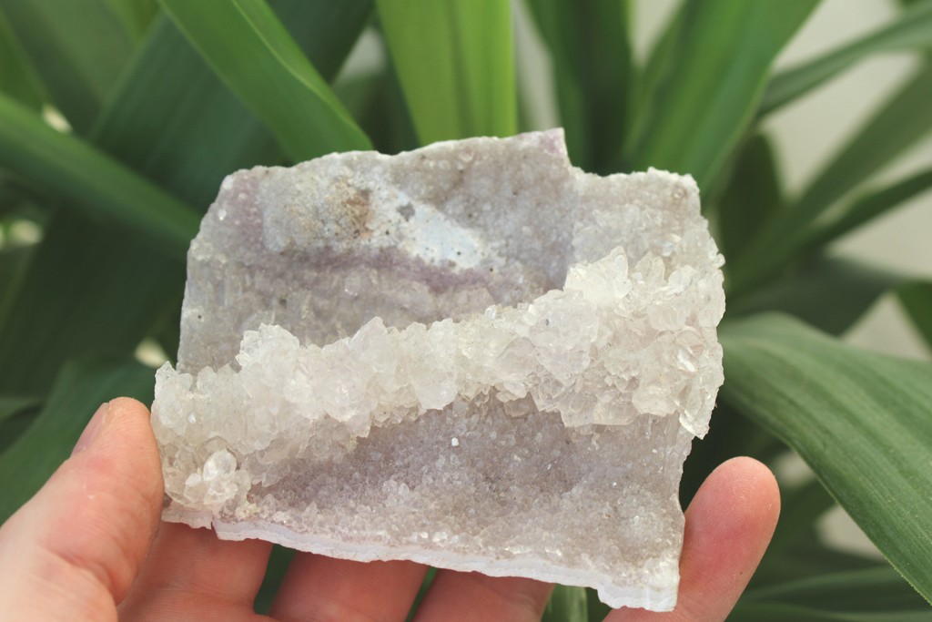 Drobná křišťálovo-ametystová drůza z Brazílie. Na ametystovém podloží je podélně položená drůza křišťálu.