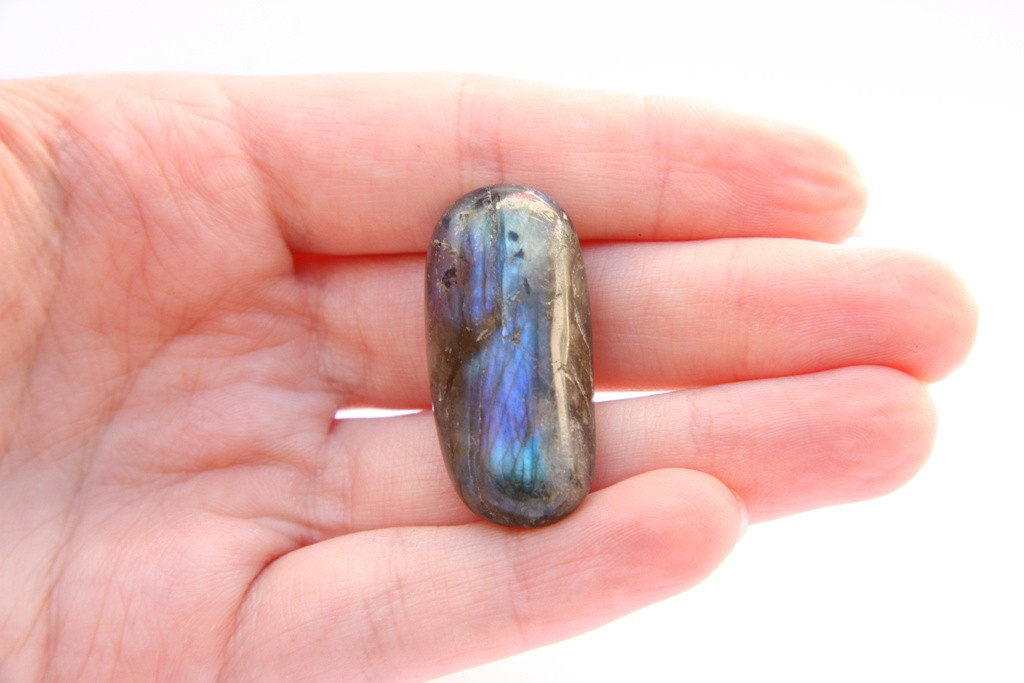 Broušený oválek z labradorit z Madagaskaru.