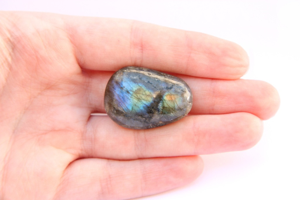 Broušený oválek z labradorit z Madagaskaru.