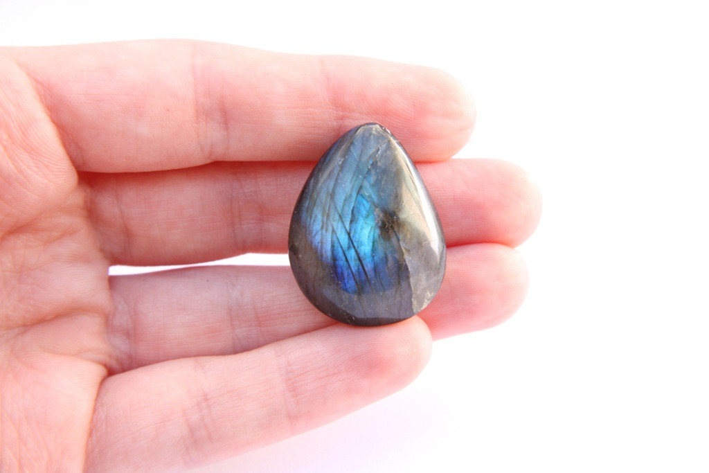 Broušený oválek z labradorit z Madagaskaru.