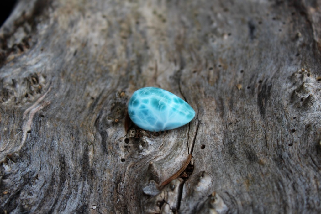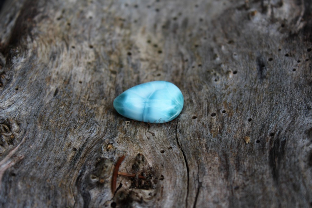 Broušený oválek larimaru ve šperkové kvalitě z Dominikánské republiky.