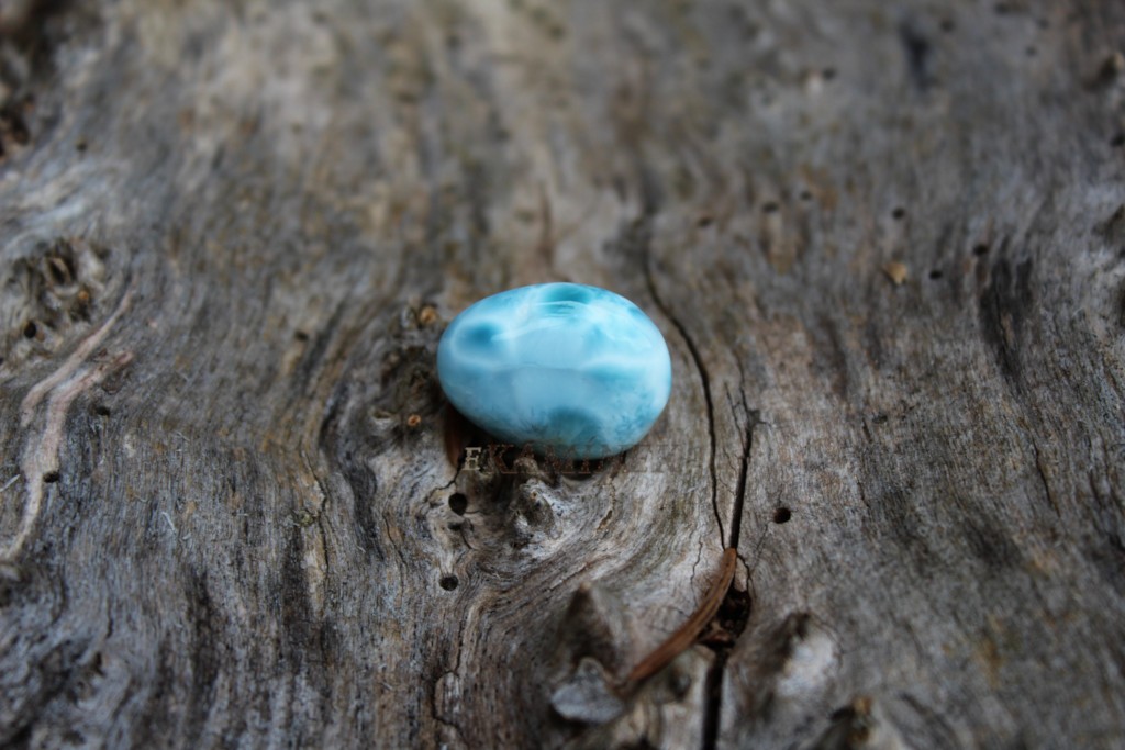 Broušený oválek larimaru ve šperkové kvalitě z Dominikánské republiky.