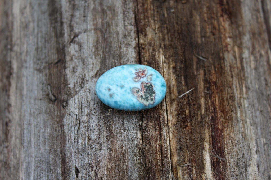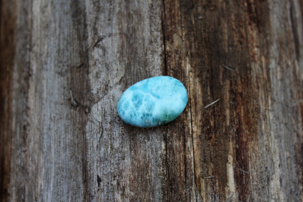 Broušený oválek larimaru ve šperkové kvalitě z Dominikánské republiky.