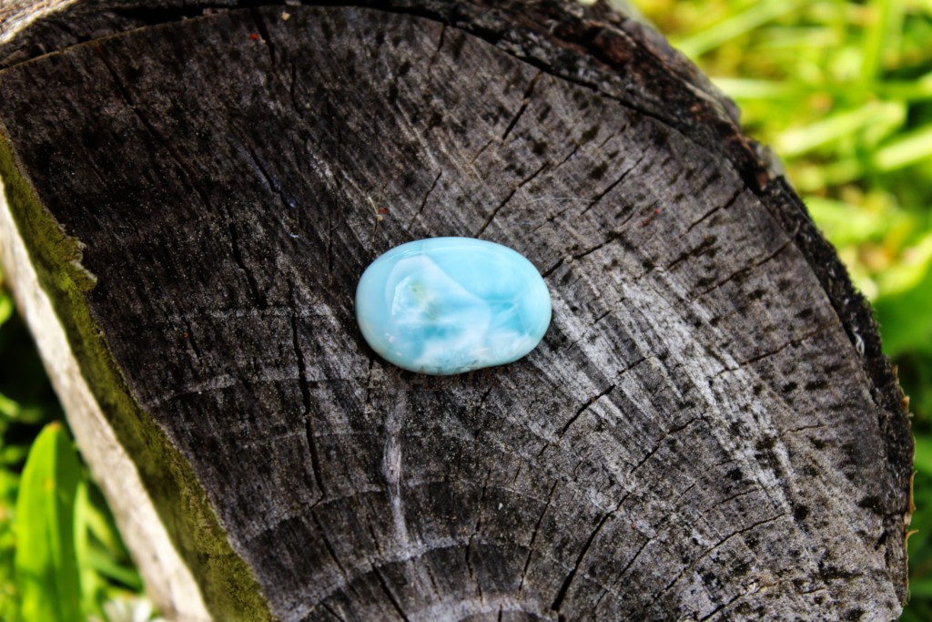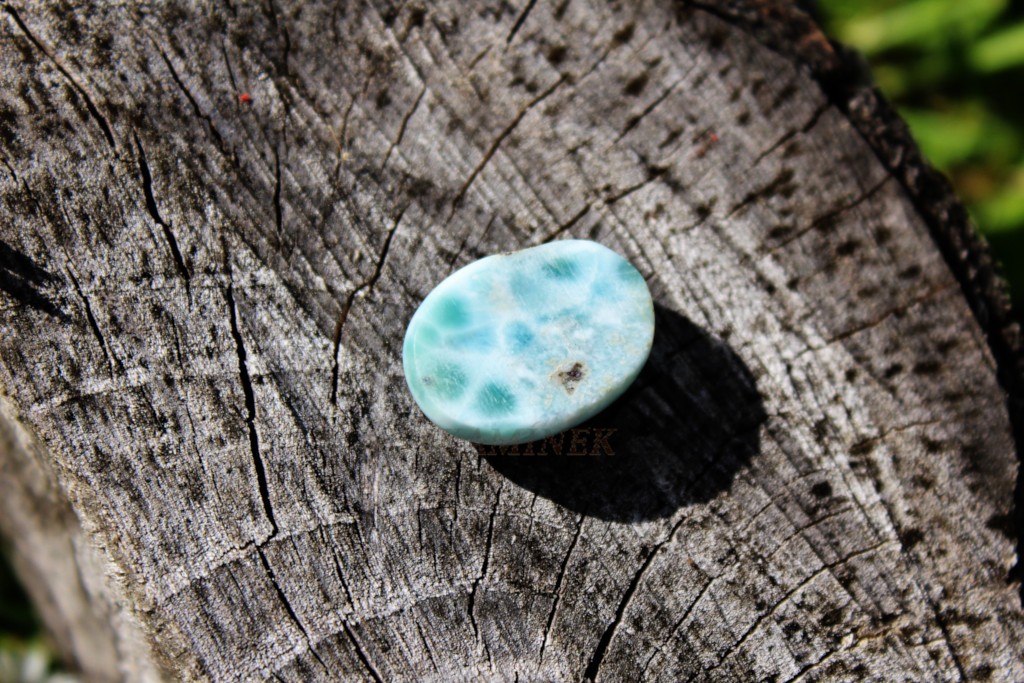 Broušený oválek larimaru ve šperkové kvalitě z Dominikánské republiky.