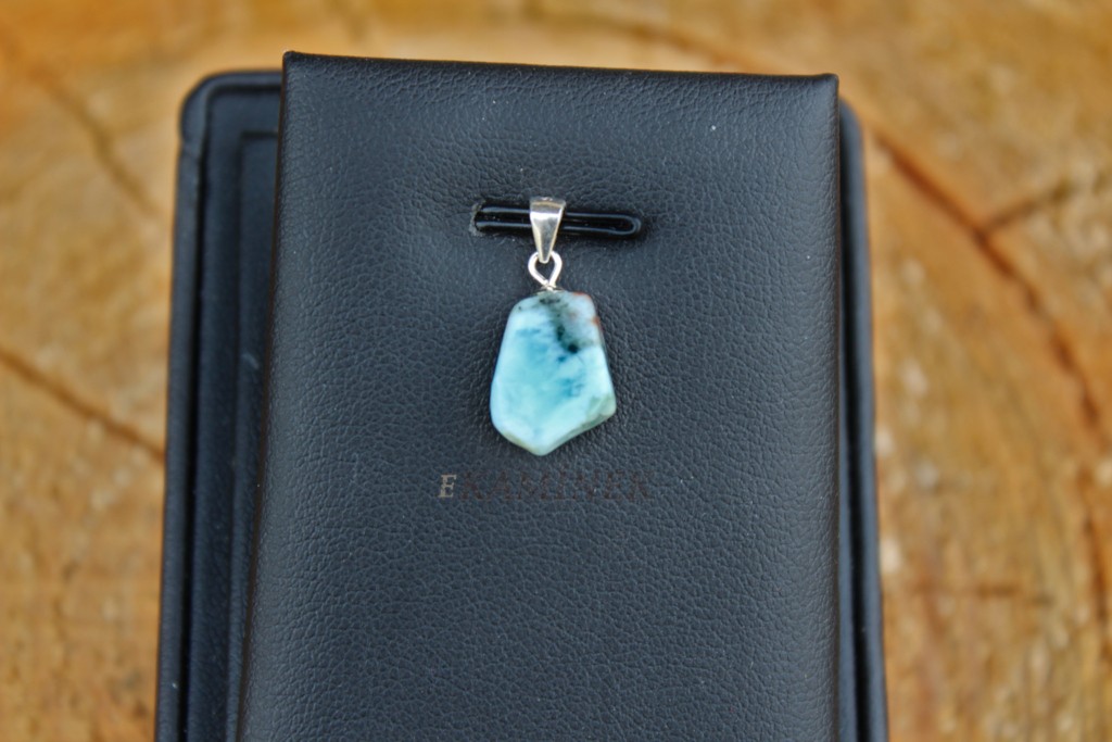 Krásný přívěšek se stříbrným úchem s larimarem, dovezeným z Dominikánské republiky.